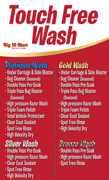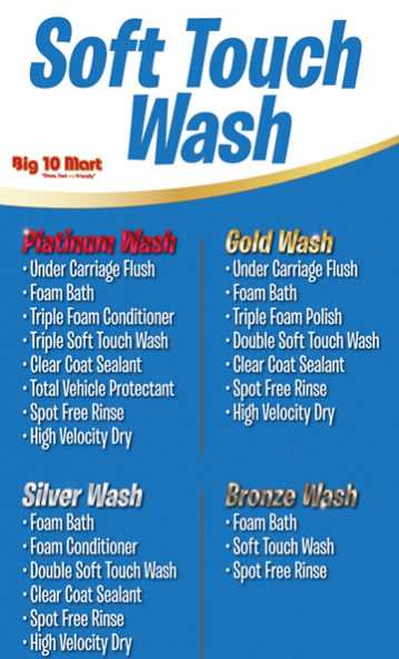 Big 10 Mart is proud to offer a new way to wash. Our Xpress program offers an unlimited or pay as you go option that fits your needs, saves you time and money! Using a digital ID sticker on your car, this is the fastest way to wash and save!